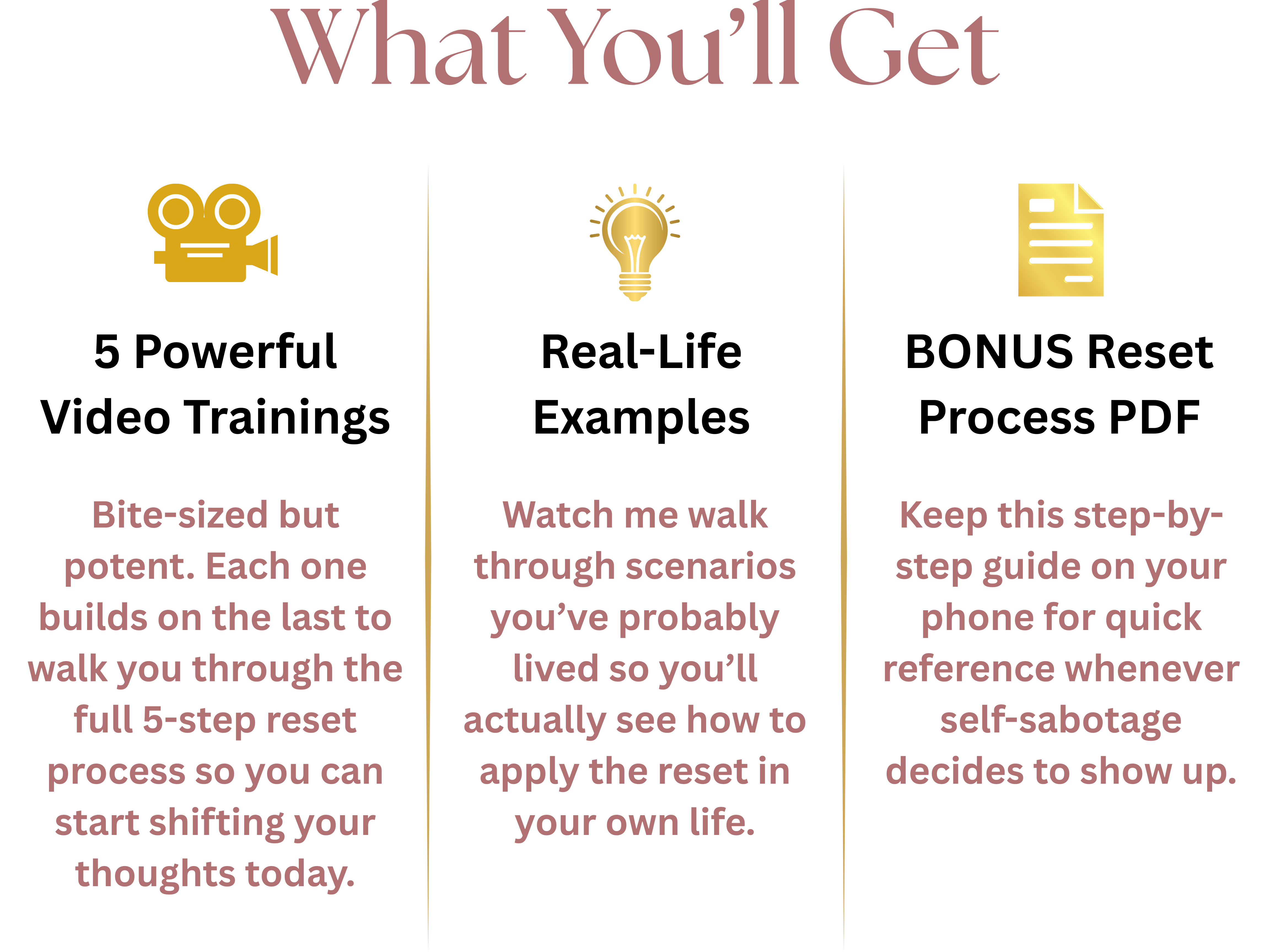 The Mindset Reset is your first step to breaking free from these loops — a quick, powerful, 5-step process you can use anytime self-doubt, fear, or overwhelm take over.